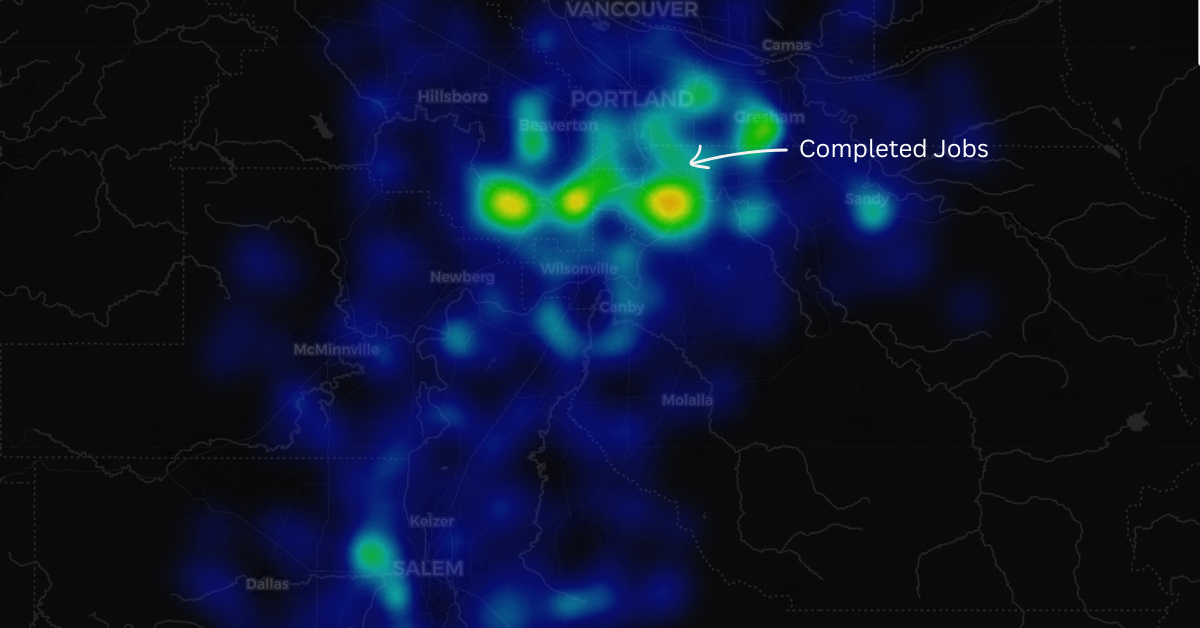 They already spent real money on Google Ads and had years of job history, but their targeting was still built on rough intuition (“We’ll grab a radius around Portland”) rather than a data-backed view of where demand lives.